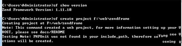 7、输入zf create project f:\web\zendframe 就在我的php环境下创建了zendframe项目