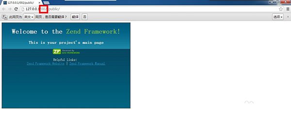 9、恭喜你,在地址栏输入http://127.0.0.1/zendframe/public显示界面,表明zend framework配置成功!