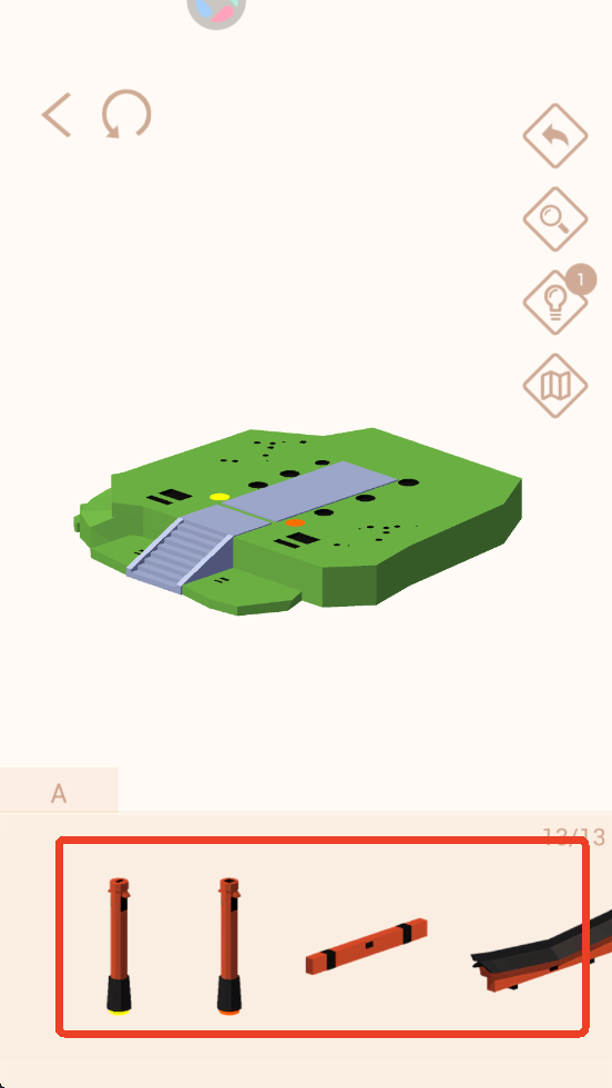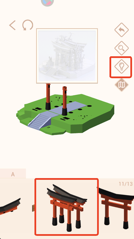 3、点击右侧灯泡选项可以获得一个提示,会闪烁几下并将下方部件跳转到提示部件。