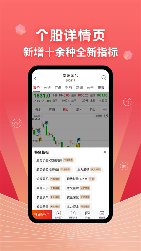 1、直播LIVE 与投资顾问、交易高手实现一对一交流。 2、炒股问答 问答广场为您解答全部炒股问题,新手炒股贴心陪伴。 3、股市观点 专业投资顾问每日为您剖析行情态势,解读市场机会。 4、策略选股 高胜率策略精选炒股标的,深度挖掘推荐市场机会、让您选股票变得简单。 5、V研选 牛人精研市场研报,结合独家交易逻辑,帮您筛选投资机会。 6、约牛号 短线高手、打板牛人、价值投资、学炒股等各类炒股达人专家,为您提供全面深入的股市在线分析。软件亮点