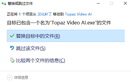 4、拷贝汉化补丁 Topaz Video AI到 C:\Program Files\Topaz Labs LLC\Topaz Video AI替换;