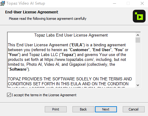 1、运行安装Topaz Video AI v7.1.0.exe,默认路径安装,避免激活汉化失败;模型路径可以设置在其它盘,模型是比较占用空间,目录不要有中文字符即可;