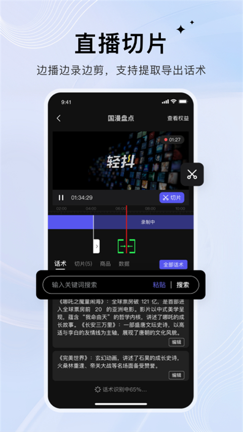 1、可以随时了解不同的短视频各类功能,实时在线分析不同的短视频更高效。 2、最全的短视频服务可以及时的知晓,用户在线处理也会更加的简洁化。 3、针对各类不同的技能信息也可以及时的知晓,在线学习不同的拍摄服务更省心。 4、随时了解最新的直播热榜,让你了解各类不同的服务功能也会更快捷。 5、提供了各类不同的产品,可以根据自己的需求进行对应的产品。 6、及时的了解不同产品的特色,让你在线增长自己的知识更方便。软件功能