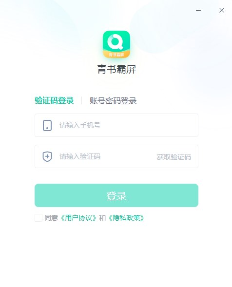 打开青书霸屏客户端后,使用你在青书学堂注册的账号和密码进行登录,没有的请向老师进行申请