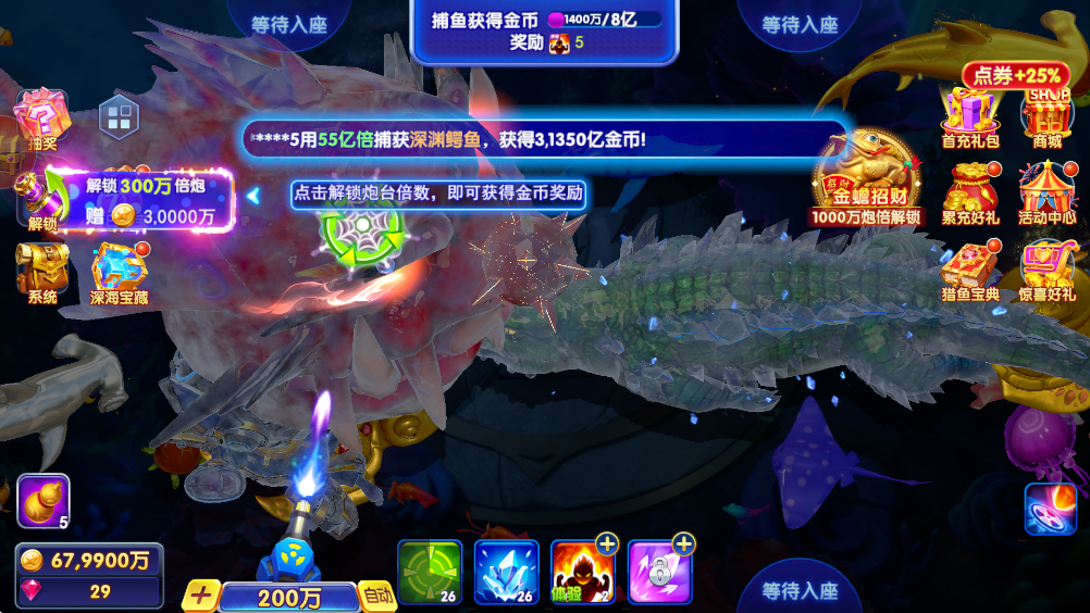 1、性能优化,修复已知bug。 2、上新鱼种【青龙】、【孔雀玄女】、【孙尚香】。 3、上新神卫【青龙】及相关活动。 4、大厅界面迭代。游戏截图
