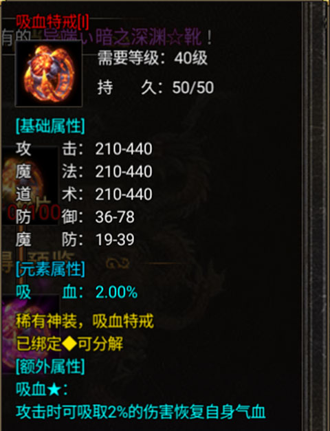 在黑暗光年手游中有一些十分强力的道具——“特戒”。获得它们,我们的实力将会得到强力的提升,今天,就让小编来带各位看下游戏中的这些特戒吧! 1、吸血特戒 材料消耗:上一阶级吸血特戒+吸血碎片 材料来源:每日充值赠送 材料合成方式:可在合成-特戒面板中合成吸血特戒 特戒特性:吸血属性
