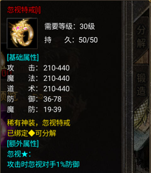 材料消耗:上一阶级忽视特戒+忽视碎片