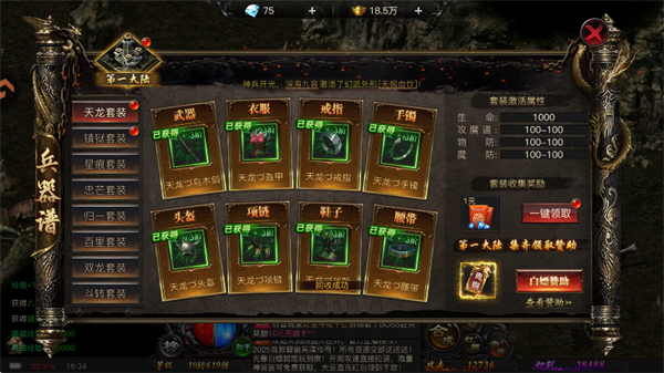3、但需要注意,游戏从低到高都有套装,集齐后可以增加额外的属性,最后将其刷满后再进入下一步。