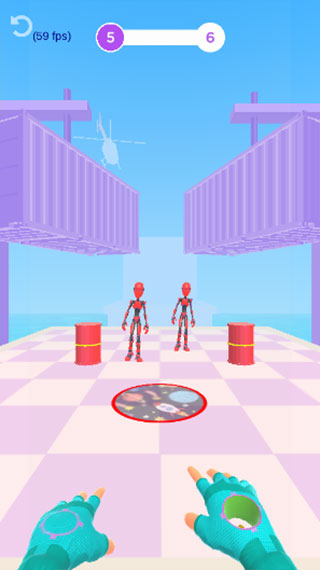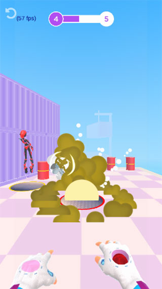 3、在炸药桶旁边放一个传送门,利用炸药桶把机器人炸死;
