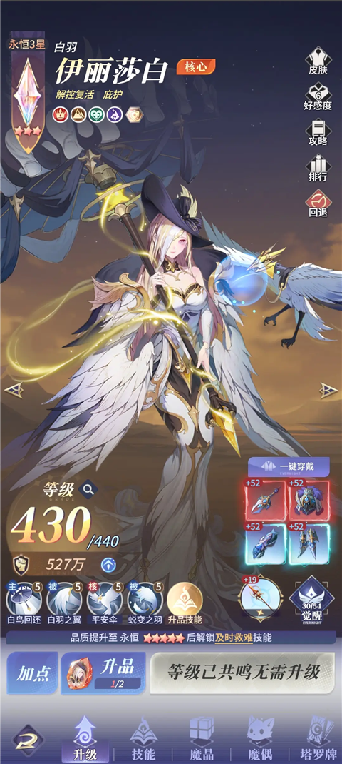 解控大王,解控不受限制,可单走,配合弥纱一起效果更佳,唯一不太好的就是回血速度不及上面两位,但大招可复活也算弥补,刚需永恒二(永恒二也就可以了),专武不刚需(只有专四才能有很好的效果)。