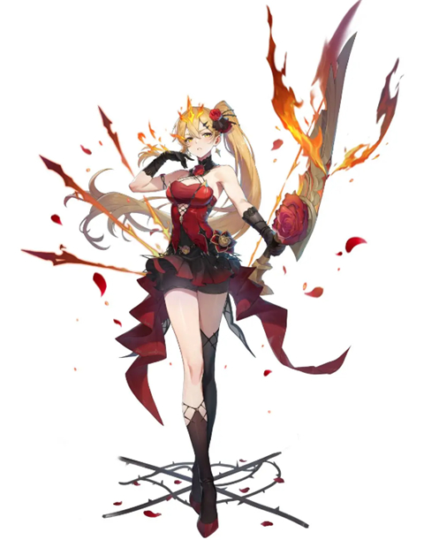 尼迪娅在灼烧队中承担前排和输出的作用,因为尼迪娅不仅有主动技能对灼烧技能必定暴击,而且光环技能龙血焚灭的存在,令其有着不俗的保命能力。在龙之领域达到四层%时进入龙化形态,还能迎来一波不俗的爆发。
