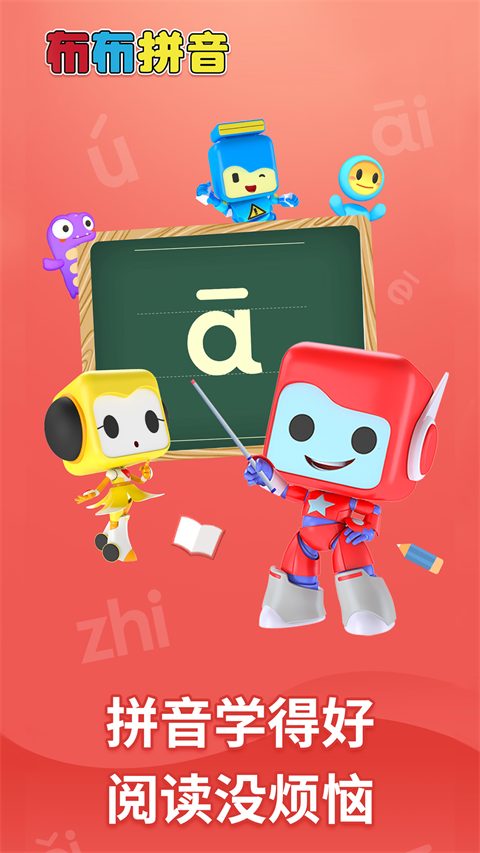 覆盖拼音知识点——布布拼音有83节课时,涵盖6个单韵母、23个声母、18个复韵母、16个整体认读音节以及20个单元复习。每个拼音字母有课程讲解,科学合理的安排拼音学习。 拼音读写规范——示范发音方法,解析发音难点和重点,让孩子理解发音;示范书写规范,四线三格标准书写,讲解字母的书写方向和顺序,让孩子书写标准、美观。 沉浸式互动课程,拼音学习有趣——情景式拼音教学,设置多个主题场景,包含:城市、乡间、海洋、森林、沙漠、食物、医疗等等,让枯燥的拼音学习有趣。 五大环节学拼音,课程体系科学——认拼音:拼音字母讲解 字母字形理解;读拼音:口型示范,字母跟读发声准确,AI童声识别,判断孩子发音;写拼音:真人握笔书写,字母书写笔画标准;学声调:创意动画演示,声调学习科学有趣;玩拼音:拼音游戏练习,强化训练加深记忆; 拼读训练 合理掌握拼读规则——根据拼读规则,针对性的设计趣味两拼、三拼复习游戏,让孩子合理的掌握拼读规则和拼读音节。 儿歌教学 录音跟读训练表达——20首单元儿歌涵盖了单元内新学习的拼音字母和词汇。跟读儿歌环节设置播放示范读单句儿歌和跟读单句儿歌,同时可以播放孩子跟读录音,跟儿歌示范读进行对比,及时纠正孩子发音问题、锻炼表达句子的能力。 智能学习报告——自动化数据采集,将孩子学习情况即时推送到微信,实时了解学习进度。根据知识谱图制定复习计划布布拼音APP如何更改学习数量?
