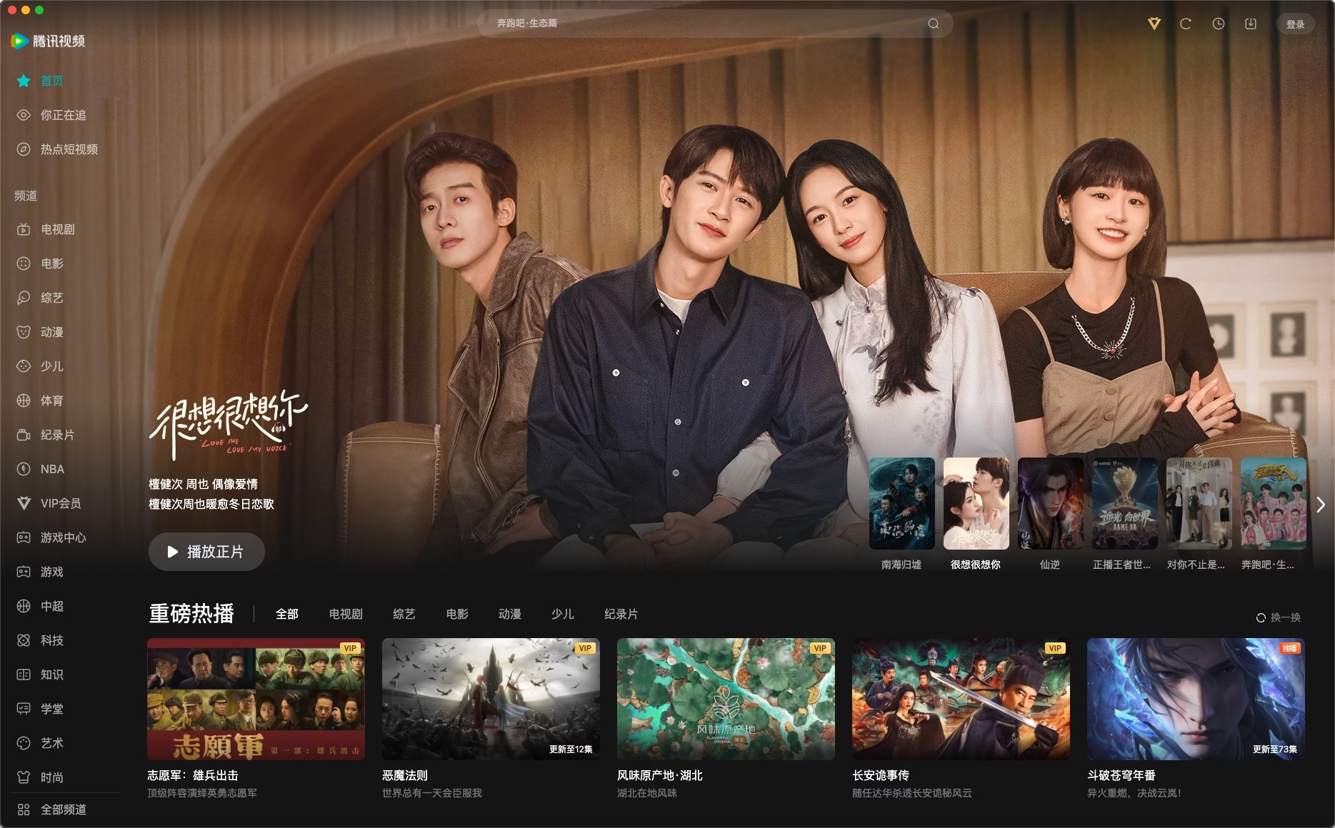 腾讯视频Mac客户端是腾讯视频为MacOS用户推出的腾讯视频客户端产品,支持丰富内容的在线点播及电视台直播,提供列表管理、视频音量放大、色彩画质调整、自动关机等等更强大的功能服务。全网视频一网打尽,纯净式无框播放器,免费享1080P蓝光,极速流畅播放体验。腾讯视频致力于打造中国领先的在线视频媒体平台,以丰富的内容、极致的观看体验、便捷的登录方式、24小时多平台无缝应用体验以及快捷分享的产品特性,主要满足用户在线观看视频需求,本站免费提供腾讯视频 for Mac免费版下载,详细安装请参考下文。