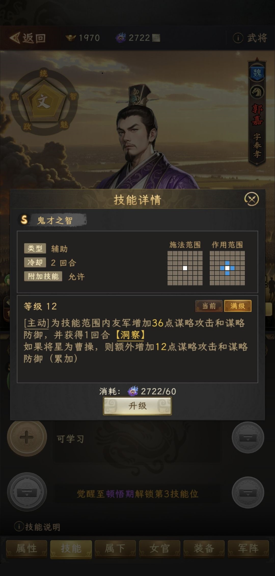 虽然郭嘉的天赋技能 “鬼才之智” 很垃圾,