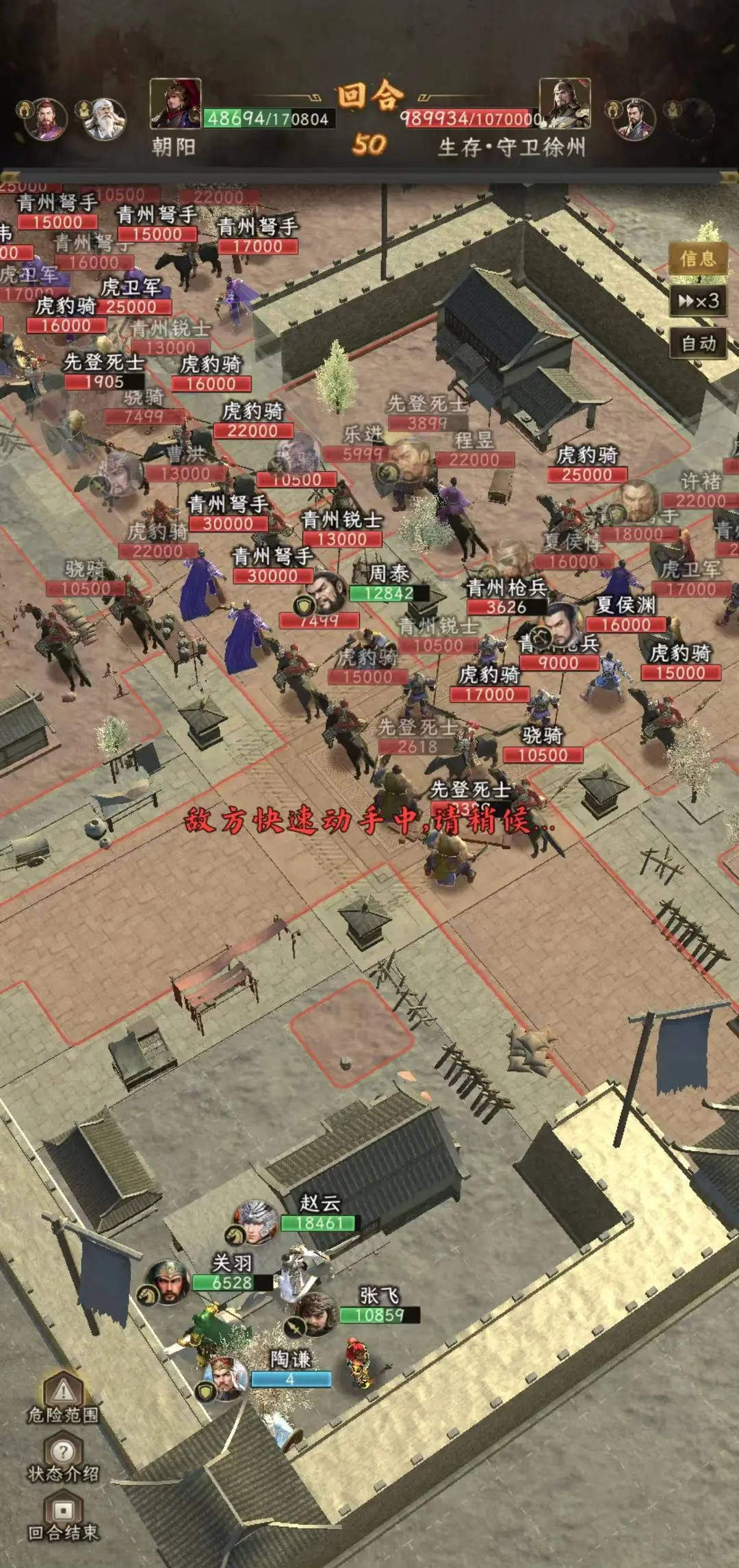 如果用孙权做将星,33 回合后周泰是无敌的,他周围 2 格的武将也很难死。