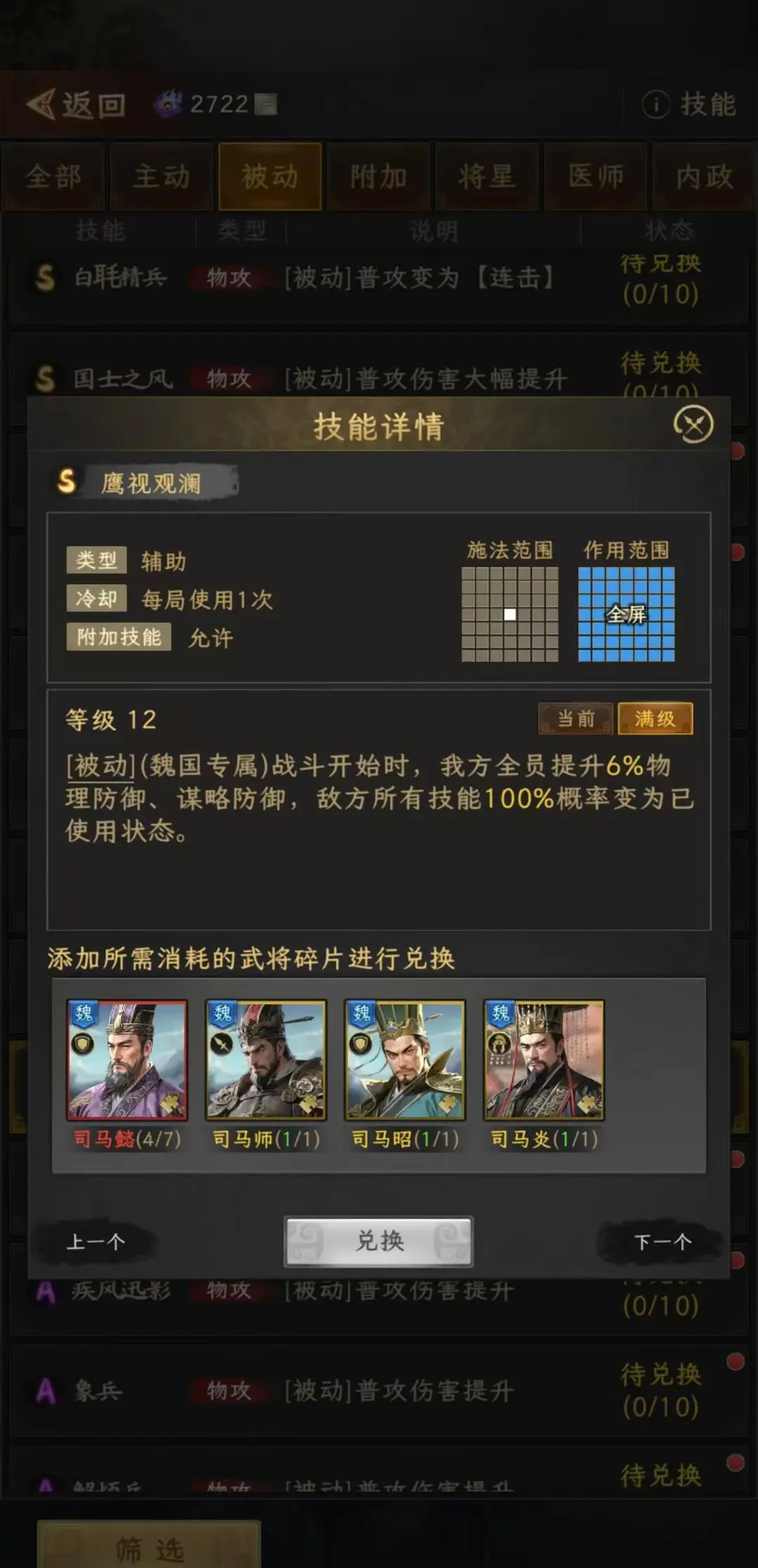 阵营:魏国(可受曹操谋攻加成,可带 “鹰视观澜”);