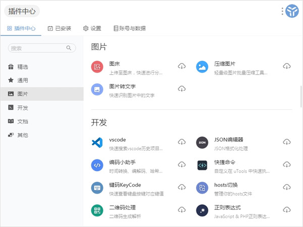 1、搜索功能 支持中文拼音首字母 支持中文拼音 支持英文首字母 使用插件管理功能示例# 在搜索框中输入 插件管理 Plugins 或者输入拼音首字母 cjgl 或者输入拼音 chajianguanli 按 Tab 回车 空格 键直接进入 2、离开uTools 鼠标点击其他区域(uTools失去焦点时自动隐藏) 或再按一次唤起快捷键 3、退出插件 主输入框按 回删 键即可退出 或macOS 退出快捷键 Command + W (默认快捷键) 或Windows 退出快捷键 Ctrl + W (默认快捷键) 4、多任务 支持你在启用一个插件的时候通过快捷方式与搜索条分离窗口,这可以让你再次搜索使用其他功能或暂存记录你要的功能 进入插件后按快捷键 macOS: Command + N 5、多指令 软件的搜索条支持输入特定内容快速触发特定功能如: 功能触发需要安装对应功能插件 在搜索条输入一个JSON字符串{"u": "tools"} 回车或空格即可唤起JSON编辑器并处理你输入的内容 在搜索条输入一个时间戳1535462655 回车空格即可处理这个数据并以多种形式展现,快速获取你所需数据 从Web或者文件系统拖入图片或文件 到搜索条中,可以对图片进行编码或获取文件hash,如图中包含二维码还可快速对二维码进行识别及编辑 从剪切板黏贴图片或文件 到搜索条中,可以对图片进行编码或获取文件hash,如图中包含二维码还可快速对二维码进行识别及编辑 6、数据同步 软件的数据同步功能可以在多台终端上互相同步所需数据 该功能需要插件支持 在搜索条输入设置 后打开偏好设置 登陆账号并绑定邮箱后即可开启数据同步功能 此时需要同步数据的插件数据会无缝进行同步 7、自定义指令# 可以允许你设置任意快捷方式绑定功能插件,方便快速唤起功能,使用更直接 在搜索条输入设置 后打开偏好设置 新建全局功能快捷键 在 快捷键 设置快捷键 如 Shift + A 在 指令 设置指令,如JSON 按下快捷键后即可快速呼出JSON编辑器uTools Mac版进阶技巧