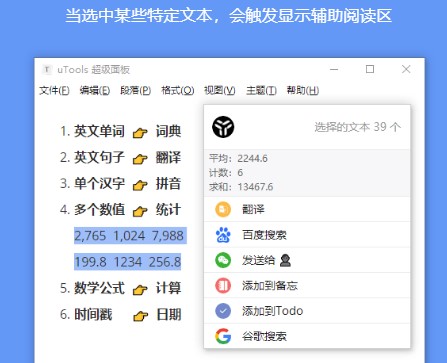 10、当选中某些特定文本,会触发显示辅助阅读区
