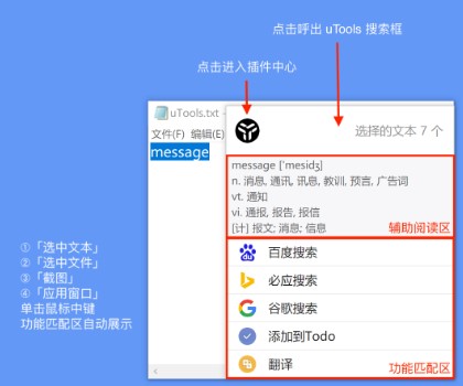 1、插件化 优秀的插件化设计,自取所需。每个插件解决一个具体场景的问题,简洁易用、随用随走。 2、多功能输入框 支持文本、截图、图片、文件、文件夹。 3、自动识别 自动识别文本类型(json、base64、时间戳等) 4、自动粘贴 呼出uTools时,如果剪切板中5秒内有新的内容,将自动粘贴到输入框。 5、全局快捷键 配合插件,可一键上传截图到图床、以图搜图、翻译剪贴板内容等。 6、数据同步 云端同步,永不丢失。utools电脑版使用教程
