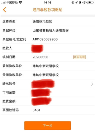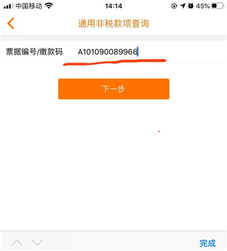 3、点击进入“通用非税款项”,输入学校发送短信中的缴费“票据编码”,