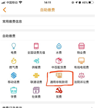 2、进入“更多缴费”后,在诸多缴费项目中找到“通用非税款项”,