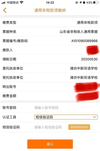 5、点下一步后进入缴费页面,输入个人“账号密码、手机验证码”确认后即可完成缴费。