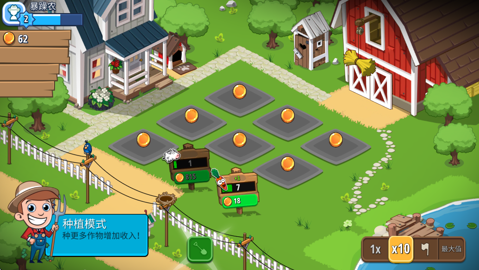 1、随时随地的畅玩,游戏带来无限的乐趣。 2、简单的操作方式,玩家快速上手。 3、悠闲的生活,带来欢乐的体验。 4、种植各种农作物和动物,瞄准世界上好的农场。 5、轻松忽视开发游戏,您可以悠闲地享受。 6、您可以在撇渣时间自由而完全地在空闲时间享受。 7、让我们扩大种植园,让它变得生动活泼。闲置农业帝国玩法攻略