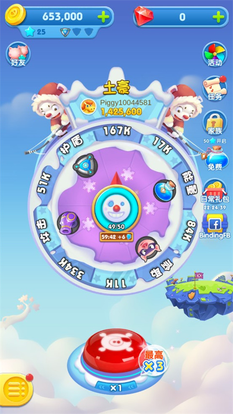 1、【旋转轮盘赚取金币和免费旋转】 旋转魔法转盘来赚取财富、攻击、突袭或窃取硬币。保护您的岛屿和硬币免受其他玩家的袭击。用硬币建造您的岛屿并解锁新的目的地岛屿。成为拥有最佳岛屿和收集硬币大师的岛屿小猪! 通过完成有趣的挑战,旋转轮盘还可以获得免费旋转! 2、【收集所有有价值的卡牌】 收集卡片并与您的家人和朋友交换以完成守护神套装,您可以免费赢取大量旋转!完成岛屿的建造并解锁下一组卡。 3、【与您的朋友一起玩】 加入我们的社区,结识新朋友,加入部落,学习新游戏琐事,并通过水果商人和魔法树赚取数百万金币。在社区中交易您的卡牌,一起玩以促进您的进步!猪来了怎么获得能量