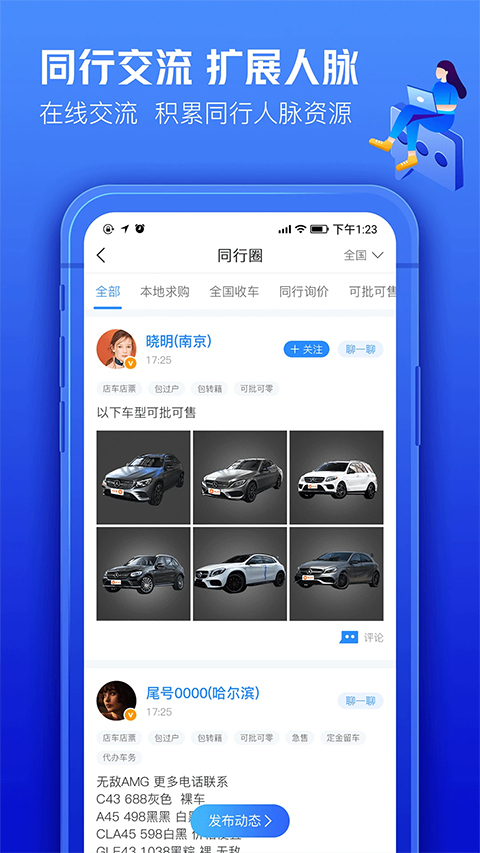 【免费发车】 新车二手车,零售批发一键同步,新增视频发车 【汽配必备】 1、汽车配件EPC查询 2、OE配件结构分解图查询 3、故障码查询 【交易必查】 1、精准定价:车辆精准定价,车况选项更多,报告内容更详细 2、车型识别:VIN码查询,识别高低配,买车更放心 3、维修记录:车辆历史维修保养状况,一键查询,掌握细节不吃亏 4、碰撞记录:车辆历史碰撞记录,杜绝事故车,保障购车安全 5、综合车况:维保、碰撞、事故车数据多端覆盖,心中更有谱 6、违章查询:免费查询,实时提醒最新违章 【同行交流】 1、同行批发:同行好车,即刻掌握 2、同行圈:打造完整的二手车商社交生态 3、行业学院:行业资讯,一手掌握车300专业版怎么更换绑定手机号