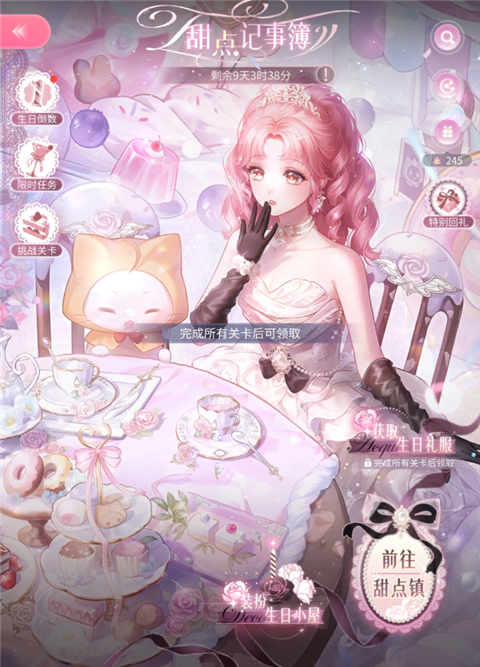 该活动只有周年庆才会推出,本次周年庆套装玩家过完剧情就有,剧情得到生日那天才能完全解锁。就那个进入甜点镇。过完,然后再点外边的领取。