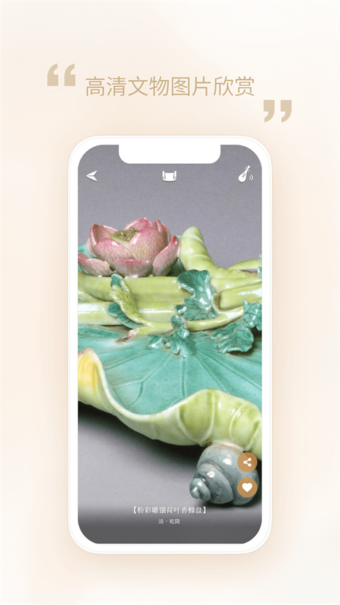 1、故宫博物院馆藏每日撷珍,纵览各领域珍贵文物及代表作品; 2、解读部分文物工艺要点及背景故事; 3、高清文物细节图片欣赏; 4、精美日历信息页面; 5、心情笔记记录及分享功能,充满艺术气息的分享模板; 6、用户注册登录后可对笔记进行保存和不同设备间同步。软件特色