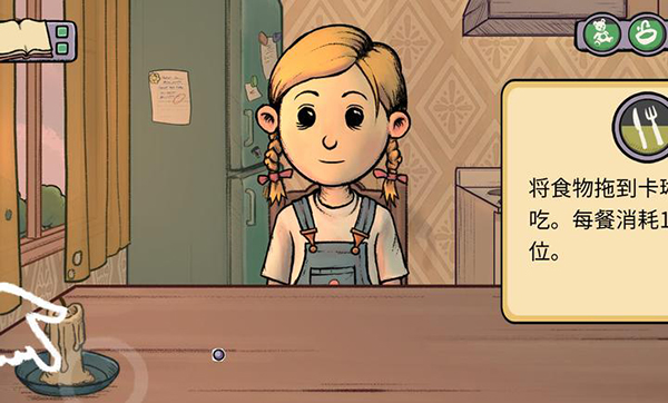 12、玩家需要将食物拖拽给孩子,这样才就可以进食增加饱腹度了。