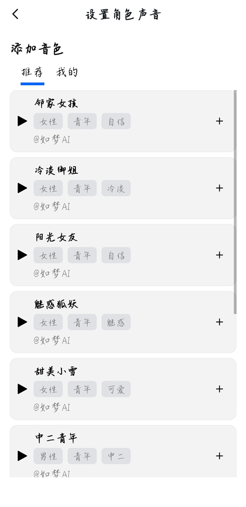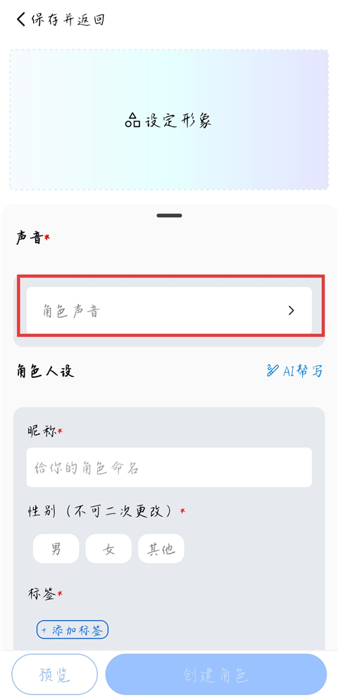 6、点击【声音】,选择AI接下来与你对话交流的声音。