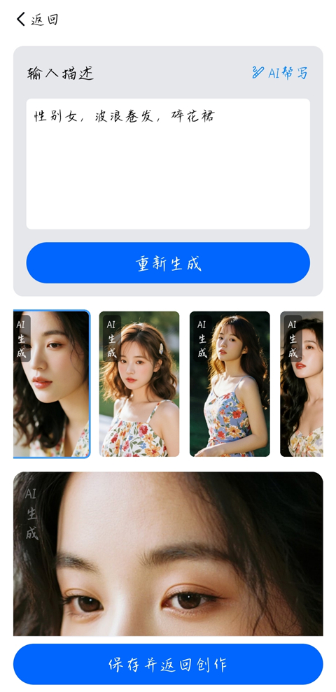 5、下方给出几个形象,选择自己喜欢的形象,点击【保存并返回创作】。