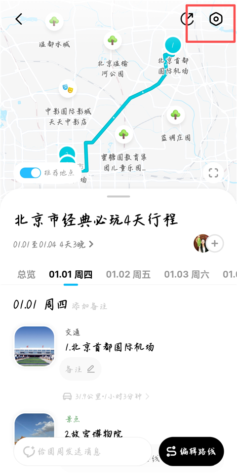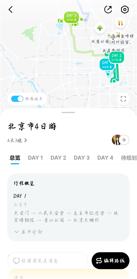 3、软件就自动生成这几天的攻略,点击下方【编辑路线】可进行修改。