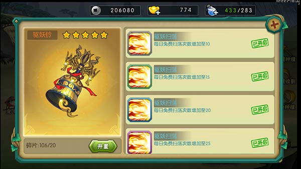 诛仙剑为六娃专属法宝,可以提神自身属性外还有特殊技能对所有敌人早晨伤害