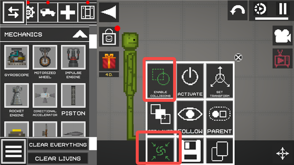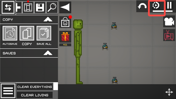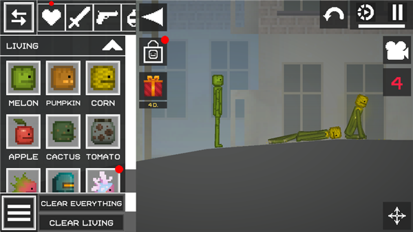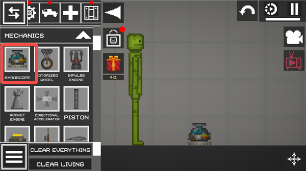 1、进入甜瓜游乐场最新版本,拿出一个西瓜人和拿出一个陀螺仪。