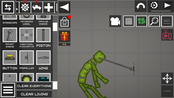 1、无任务、无规则束缚,玩家可随心所欲建造、破坏或进行物理实验。 2、还原重力、碰撞、爆炸等真实效果,布娃娃物理反馈让互动充满惊喜。 3、提供功能强大的工具栏,包括移动、启动机械、冰冻等互动工具,能更精细地操控场景中的元素。甜瓜游乐场2026最新版怎么让西瓜人跑步