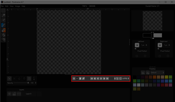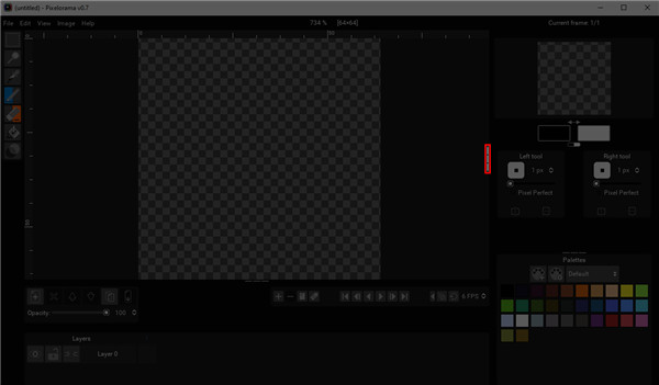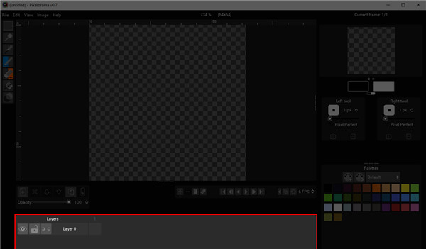 默认情况下,只有一个cel可见,这意味着您只有一层(第0层)和一帧(第1帧)
