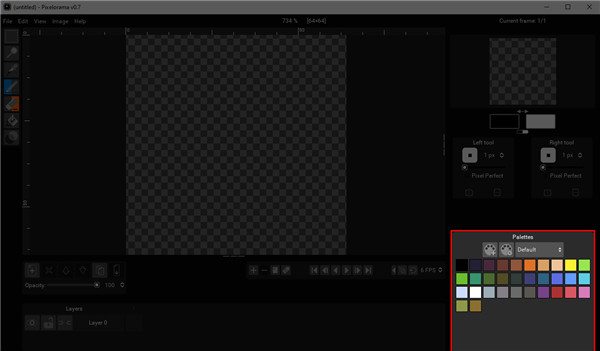默认调色板称为“默认”,这是您首次打开Pixelorama时看到的内容。#