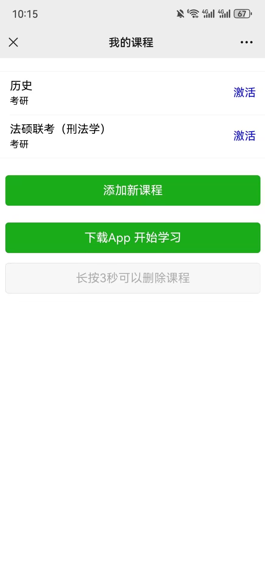 3、点击右下角添加课程,添加你需要学习考试的课程(添加即可不需要激活);