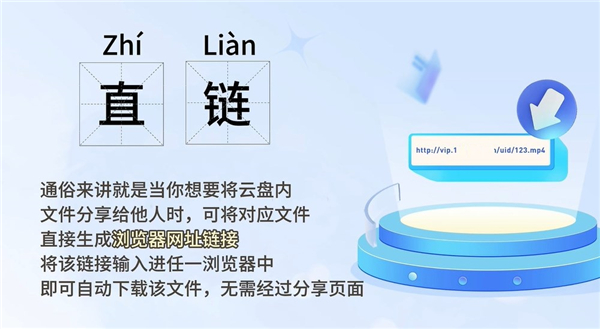 1、直链是123云盘的特色功能,大家可以直接通过连接下载打开文件,无需使用客户端,注册账号和登录就能够直接下载。