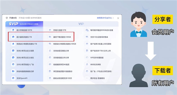 用户注册后即可获得免费2TB永久空间,VIP用户享有20TB大空间,SVIP用户尊享100TB超大空间,且会员有效期内每月额外赠送800GB永久成长空间,满足用户日益增长的存储需求。