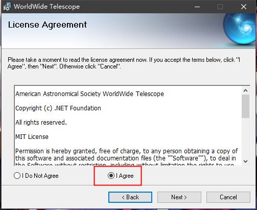1、下载解压得到安装包,点击"wwtsetup-6.1.2.0.msi",选择i agree同意条款;