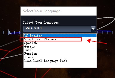 5、弹出选择框,下拉选择Simplified Chinese(简体中文),然后重启软件;