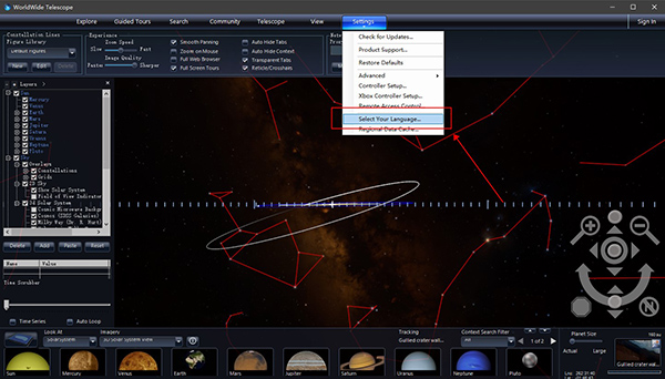 提供了WWT与实体望远镜的接口。通过和ASCOM天文仪器控制软件联动,在WWT中就可以实现对望远镜的控制。