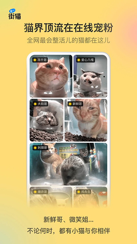 1、人与动物、和谐互动 在猫屋直播间你可以远程投喂流浪猫猫、狗狗、刺猬、松鼠等小动物,有激萌小奶猫与猫屋志愿者一起在镜头前感谢”姨姨、姨夫“的爱心投喂。 猫屋申请人帮助猫屋能进入小区或其他地方,猫屋志愿者(又叫猫猫侠)是猫屋附近一批日常喂养照顾流浪猫的爱心人士,志愿分担了猫屋的清洁维护与小流浪的状况监控。在猫屋的直播间镜头下,经常会看到他们半夜给猫猫来加餐、清洁猫屋。 2、人与人、分享交流 直播间、猫友圈聚集了一批热爱猫猫的人,他们互相交流投喂、绝育、猫屋管理、救助等的问题与技能分享、心得分享。这里的每个人都在为社区的建设做一些些自己的贡献:有人创作了精彩的猫猫抓拍与吃播,有人报修云监督猫屋安全,有人热情参与猫猫救助,有人真诚夸赞那些正在爱猫的人与事…… 打破地域限制、背景差异,在这里大家可以从猫猫嘎蛋,聊到人生哲学。因猫结缘,成为了志趣相投的伙伴。 3、科学管理、坚持绝育 猫屋的设备是由街猫独立研发,在设计与投放时都会充分考虑到安全性、隐蔽性、稳定性等重要因素,24小时监控超大广角拍摄、自动报警系统、卡粮缺粮提醒等一些列功能都能较大程度上保证猫屋的正常运转。猫屋的日常换电补粮有街猫运维团队完成,猫屋支持小动物标记管理,为后续健康监控与绝育管理打下基础。街猫app怎么看附近猫屋