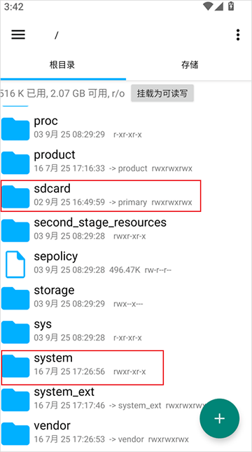 2、把屏幕向下滑,还可以看到sdcard、system文件夹,安装RE管理器后通常需要关注的就是这几个文件夹,文件夹点击就可以打开;