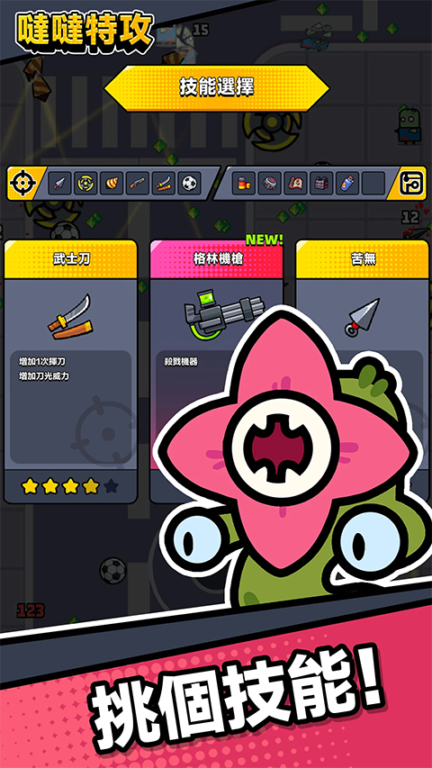 4、游戏中,地图上会有经验掉落,玩家可以收集经验,升级可获得技能;