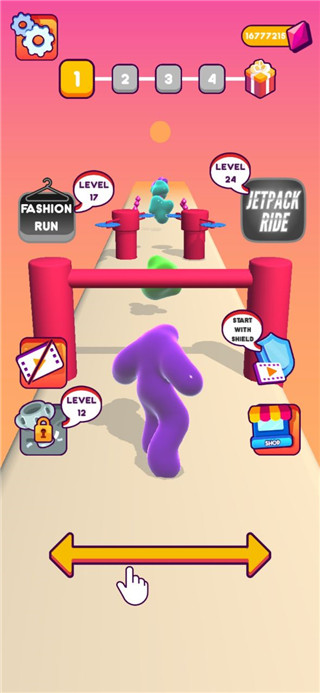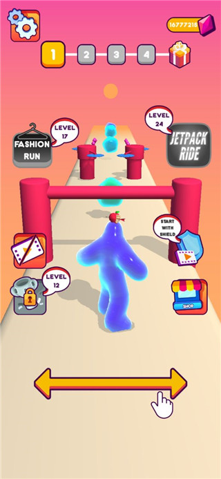 1、你可以选择不同风格的帽子和皮肤给果冻人,展示出自己的风格吧! 2、别忘了!遇到障碍物也不要怕,果冻人吃更多果冻就会恢复身体哦! 3、当心障碍物,并不断让自己长大!终点的奖励多少取决于果冻人的大小。 4、如果路上可以收集足够多的果冻让身体变大,则可以在终点获得意外奖励哦。 5、一旦碰到致命的障碍物,果冻人就要重新开始游戏了。疯狂果冻人最新版新手指南